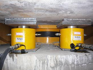 泰州市索力機械制造有限公司生產(chǎn)的同步薄千斤頂、超超薄型千斤頂用與陜西太原高鐵橋梁工程矯正